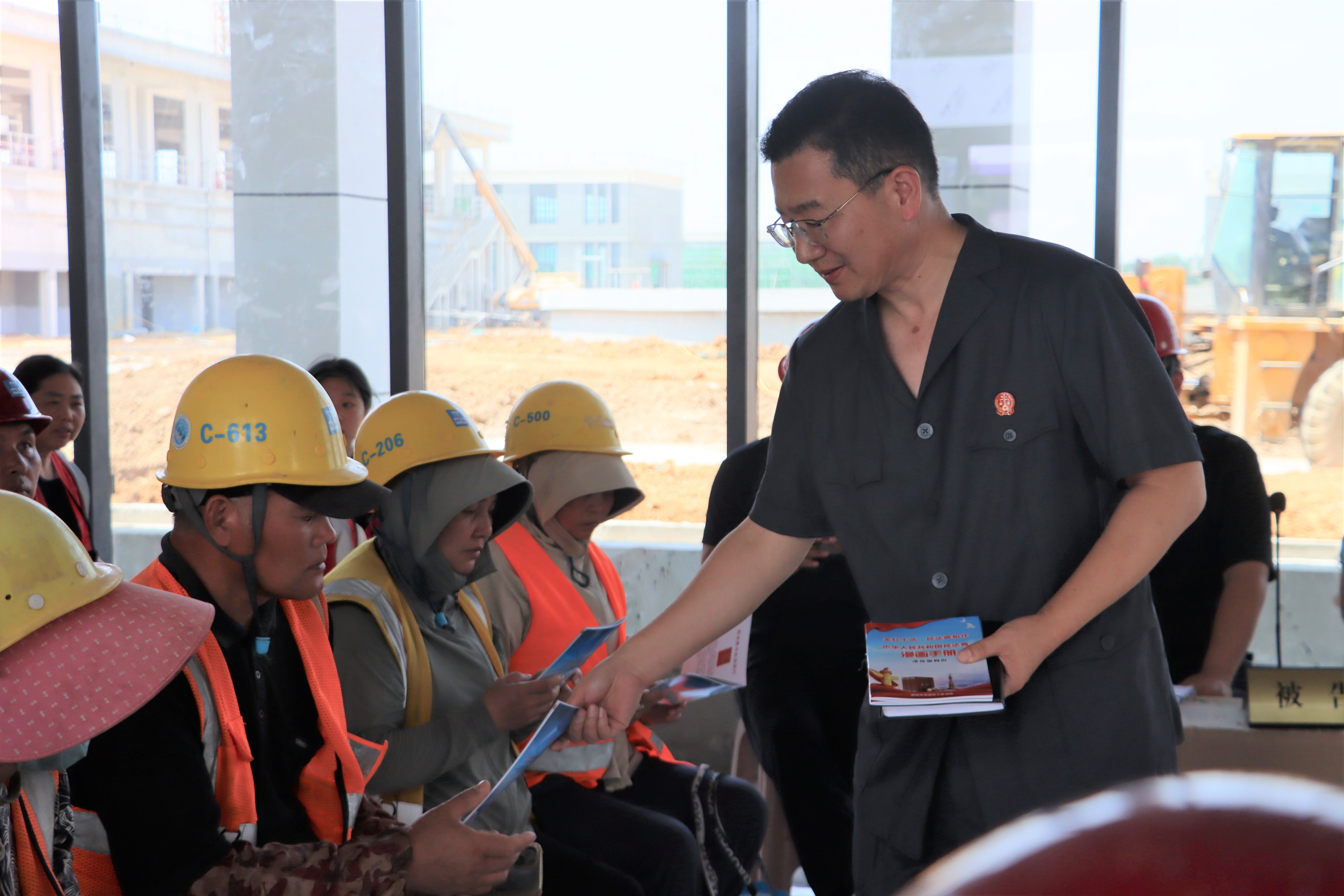“今年6月是第24个全国‘安全生产月’,本次宛城区法院将法庭搬到工地,也是希望以真实的发生在身边的案例,为工地负责人、工人朋友普普法、提个醒。”庭审结束后,宛城区法院党组成员、审判委员会专职委员郭振业就地开展了一场别开生面的普法活动,结合“安全生产月”主题,指出工地现场可能存在的各类安全隐患,并就如何做好预防措施、降低事故发生的风险进行现场讲解。